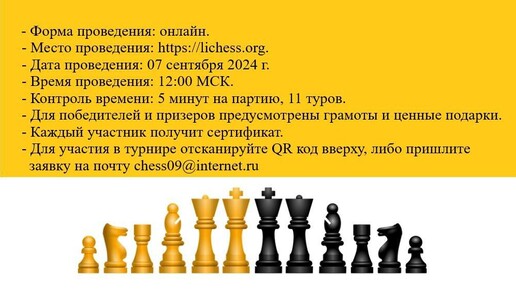 Дорогие друзья! Е-клуб России в честь своего 10-летия организует проведение международного онлайн-турнира по шахматам. Мы ждём вас и очень рассчитываем на вашу поддержку. Просим председателей комитетов ICC распространить эту информацию среди иностранных клубов. Дата проведения 7 сентября (суббота) 2024 г...