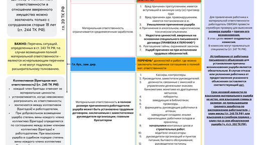 Работник по закону обязан возместить работодателю прямой действительный ущерб. Прямой действительный означает, что ущерб объективно существует: уменьшает наличествующее у работодателя имущество, ухудшает его состояние, а также расходы работодателя по возмещению ущерба. Работодатель может предъявлять требования о взыскании убытков, причиненных имуществу третьих лиц, если работодатель ответственен за его сохранность. Так работник, который знает о наличии у работодателя имущества конкретных третьих...