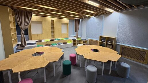 В школе-интернате №2 города Енакиево в ДНР открылась игровая комната, интерьер которой выполнен по проекту студенток кафедры дизайна пространственной среды СПбГУПТД Анны Бабошиной и Ариадны Шинкоренко. Основной задачей было создание комфортного пространства на 50 м² с тремя зонами: отдыха, учебы и активных игр...