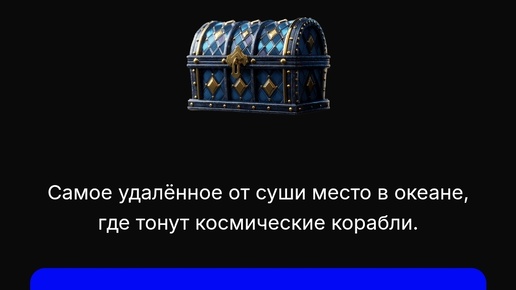 Что за игра? Игра из всем известного ЧекСкана, подробнее про неё можно узнать вот здесь Для меня это не способ заработать, а просто интересная игра с прохождением квестов, географическими открытиями (для меня), немного с эмоциями и азартом. В общем, просто - ИГРА. ************************************* Итак, собравшись с силами, и покорив Антарктиду с её подлёдным озером, я замахнулась на свой последний морской сундук.  Оказалось, что это очень интересная локация, называемая вполне официально Точкой Немо...