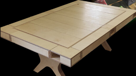 Стол выполнен полностью из фанеры экстра класса, основание, подстолье и откидные столики.  В собранном виде габариты стола 1.3*2.5 м, плоскую ровную поверхность можно использовать как обеденный стол. Что бы использовать его как игровой, необходимо убрать съемные фасады внутрь подстолья. Стол сделан для совместной игры в Dungeons & Dragons (или других настольных игр, с использованием...