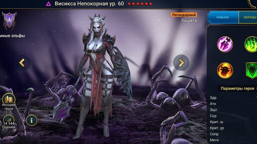 Висикса Непокорная гайд на героя. В этом гайде мы рассмотрим героя Висикса Непокорная, которого могут получить все игроки за вход на 270-й день игры. Висикса Непокорная - Легендарный герой защиты тёмной стихии из фракции Темные эльфы. Навыки: 1. Пернач - Атакует врага 2 раза. Каждый удар с вероятностью 80%(с книгами 100%) сокращает шкалу хода цели на 15%. Добавляет отнятые у врага очки к своей шкале хода. Урон зависит от ЗЩТ. 2. Зловещие союзники - Атака по всем врагам. С вероятностью 75%%(с книгами 100%) накладывает Штраф скорости 30% на 2 хода...