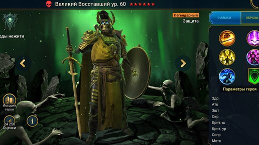 Великий восставший гайд на героя. В этом гайде мы рассмотрим героя Великий восставший, которого давали всем за вход в определённый промежуток времени. Великий восставший - Легендарный герой Защиты стихии силы из фракции Орды нежити Навыки: 1. Заноза - Атака по врагу. С вероятностью 30%(с книгами 50%) накладывает провокацию на 1 ход. Эта вероятность увеличивается до 55%(с книгами 75%) против легендарных героев. Урон зависит от ЗЩТ. 2. Крысиный магнит - Атака по всем врагам. С вероятностью 80%( с книгами 100%) накладывает Штраф атаки 50% на 2 хода...