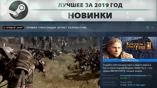 Такое впечатление, что Steam решил написать "лучшее за 2019" под каждой игрой, и чтобы никто не ушел обиженным, иначе чем можно объяснить попадание таких "шедевров", как Kingdom Under Fire 2 в топ. Или просто запустили рандомайзер, который замешал все подряд и выдал результаты...