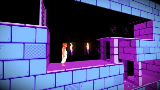 Игра 14 из 300. Управление: Кнопка "А" - удар мечом, прыжок вперёд. Кнопка "Б" - блок, маленький шаг вперёд. Кнопка "Вверх" на крестовине и кнопка "А" - большой прыжок вперёд. Кнопка "Вверх" на крестовине и кнопка "Б" - удар мечом сверху. Кнопка "Вверх" - прыжок вверх, открыть дверь. Кнопкам "Вниз" - присесть, поднять и выпить зелье. Персонаж может прыгать и удерживаться за край пропасти, взбираться. Кувшины - нужно собирать, но не все. Есть кувшины восстанавливают здоровье, есть и те, что отнимают...