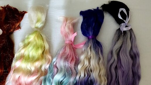 Всем привет! Меня зовут Александра, и я увлекаюсь преображением (ООАКом) кукол Monster High и Ever After High. Пока шью наряд для Арвен, и показать по факту нечего (тк он ещё не готов), расскажу, где я покупаю локоны козочки, какие они бывают и чем их можно покрасить. Локоны козы, которые продаются для волос куклам, бывают срезанные и на шкурке. Для своих работ я использую оба варианта и у каждого есть свои плюсы и минусы. Woolhobby, телеграм канал: Мастер Юлия продаёт окрашенные локоны. В ассортименте есть не только козочка, но и кудри овечки, альпака...