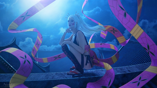Сияние луны, хрупкие тени и демоническая улыбка — Даки выходит на охоту. Этот косплей переносит нас в атмосферу «Клинок, рассекающий демонов», где каждый штрих — смесь соблазна и опасности. Автору удалось передать ту самую хищную грацию Даки, её ледяной взгляд и чарующую власть демона. Фэндом: Клинок, рассекающий демонов