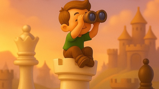 Жил-был мальчик по имени Петя, которому было всего семь лет. Однажды летом мама привела его в парк, где ребята играли в шахматы прямо на свежем воздухе — красивые фигуры двигались по большой деревянной доске. Петя заинтересовался игрой и спросил у мамы: "Что это такое?" — Эта игра называется шахматы! — ответила мама. — Давай научимся играть? Петя согласился попробовать, и вскоре мама купила ему красивую деревянную доску с фигурами дома. Каждый вечер Петя тренировался передвигать пешки, ладьи, слонов, коней и ферзя, слушал рассказы папы о правилах игры и её истории...