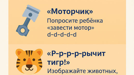 Звук «Р» — один из самых «капризных». Он требует силы, дыхания и чёткой координации языка. Но скучные упражнения быстро надоедают. Гораздо веселее превращать всё это в игру. Почему важно развивать “Р” в игровой форме: – ребёнок меньше напрягается и быстрее расслабляет мышцы; – игра помогает автоматически закрепить артикуляцию; – ребёнок начинает любить звук, а не бояться его. 3 речевые игры для постановки “Р”: «Моторчик» Попросите ребёнка «завести мотор» — быстро произносить «д-д-д-д-д», пока язык не начнёт вибрировать...