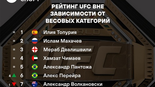 Российский боец, который лишился титула чемпиона UFC в полутяжелом весе, теперь занимает 11-ю строчку в рейтинге лучших бойцов промоушена вне зависимости от весовых категорий Россиянин Магомед Анкалаев опустился с седьмого на 11-е место в рейтинге лучших бойцов UFC вне зависимости от весовых категорий (P4P). Новый рейтинг опубликован на сайте промоушена. Анкалаев 5 октября потерял чемпионский титул UFC в полутяжелом весе, уступив в бое-реванше бразильцу Алексу Перейре техническим нокаутом в первом раунде...