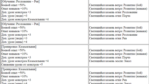 Комбинации светящихся камней(бой, гп, опыт,дроп). БДО.