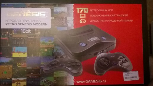 Сегодня, по чистой случайности зашел в один торговый центр, и посетил магазин DNS, в надежде обнаружить там консоль NES mini в новом переиздании. И NES mini действительно была в продаже, но как я понял это не распроданные остатки с прошлого поступления, количество игр 30. Но рядом я обнаружил сие чудо Retro Genesis Modern. Изучив коробку меня заинтересовало наличие уже встроенных 170 игр, возможность подключения картриджей и комплект из двух джойстиков, да и цена в 1799 рублей, честно говоря не очень то и большая...