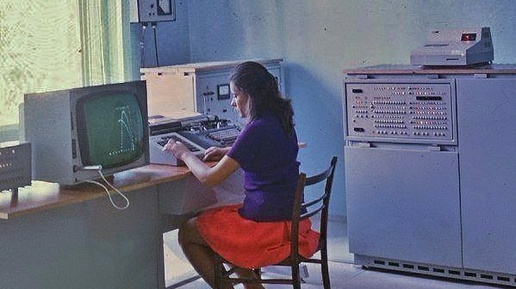 Процесс работы за совсем небольшим советским компьютером МИР-2. Этот аппарат можно было приобрести всего за 115 тысяч рублей, получив «процессор» на 12 тысяч операций в секунду, память на 16 тысяч машинных слов (с кешем на 4 тысячи слов), перфоратор, печатную машинку типа Консул и векторный «сенсорный» дисплей со световым пером. Самая важная фишка системы — работа с двоично-десятичной системой счисления, что сильно облегчало перевод величин и работу операторов...