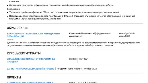 Пример резюме управляющего сетью кофеен 2025 - Как составить
