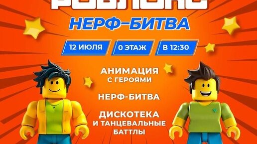 Грандиозная «Нерф-битва» в стиле Роблокс 🗓 12 июля 💸 бесплатно 📍 Щелковское ш., 75, 0 этаж Готовы к миссии? Это не просто игра — это испытание на ловкость, смекалку и командный дух! В программе: 12:30 – 13:30 — Знакомство с героями Роблокс + интерактивные испытания на большом экране ️13:30 – 14:30 — Главное событие:...