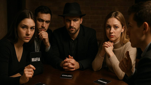 «Мафия» — это командная психологическая ролевая игра для компании от 6 до 16+ человек. Её суть не в карточках или фишках, а в общении, блефе, умении читать эмоции и убеждать других. Основная идея: Мирные жители спят ночью, а мафия убивает по одному человеку за ночь. Днём все просыпаются и пытаются вычислить, кто же мафия, и казнить его путем голосования. Если мафиози остаётся больше или столько же, сколько мирных жителей — побеждает мафия. Игра состоит из чередования Ночи и Дня. 1. Ночь (все закрывают глаза) 2...