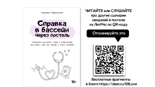 Привет, меня зовут Дуняша! Пишу в этом блоге о чувствах и о сексе после развода, а потом свои посты, мысли, желания, ощущения трансформирую в эротические истории про Дуняшу и Федю, которые однажды в 40 лет познакомились на сайте знакомств и начали встречаться в постели, каждый раз исследуя, пробуя что-то новое... 18+ Так однажды появилась книжка со сценарием в ролевую игру врача и пациента под названием "Справка в бассейн через постель". Ниже отрывок диалога из этой книжки, чтоб можно было вдохновиться словами медсестры для создания собственной истории в постели...