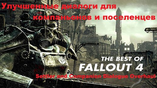 "Settler and Companion Dialogue Overhaul" разблокирует около 3,5 тысяч строк диалогов и реплик вырезанных разработчиками из игры, а также добавляет 1,5 тысячи новых. Это касается как всех ванильных компаньонов так и всех остальных персонажей в игре. Также этот мод открывает завесу тайны над прошлым Дьякона и позволяет сохранить Гейджа из Ядер-Мира в качестве постоянного компаньона. Для этого в инвентаре у вас будет диск с описанием как и что делать. И еще этот мод добавляет повторяемые квесты от ванильных компаньонов...