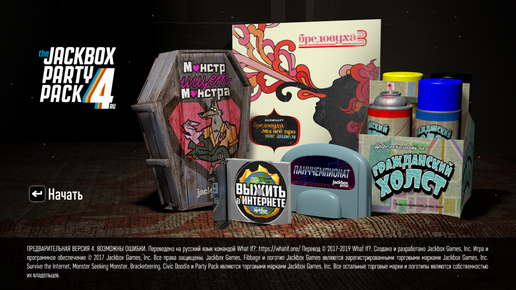 В этой статье я подробно разберу шестой The Jackbox Party Pack, расскажу о каждой мини-игре в нём и скажу стоит ли его покупать или нет. Приятного чтения! Смотри также: Обзор на первый The Jackbox Party Pack Обзор на второй The Jackbox Party Pack Обзор на третий The Jackbox Party Pack Обзор на четвёртый The Jackbox Party Pack Обзор на пятый The Jackbox Party Pack The Jackbox Party Pack 6 - сборник из 5 мини-игр для компаний: Trivia Murder Party 2, Role Models, Joke Boat, Dictionarium и Push The Button...