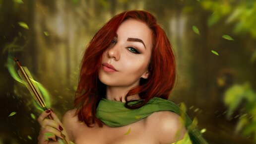 Косплей на Windranger из Dota 2. Рыжие девушки в образе. Мужчины к ним не равнодушны