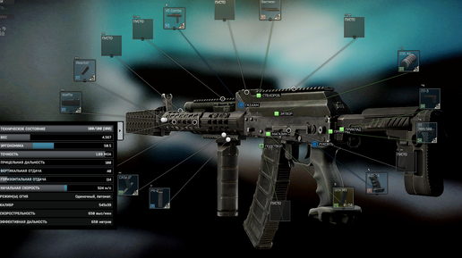 Обойдётся в ~261k руб. без учёт самого оружия, у торговца стоит 39к. руб. В этом варианте минимум отдачи, если хочется больше мобильности (эргономики) и магазин на 60 патронов, то можно ручку заменить на РК-01...