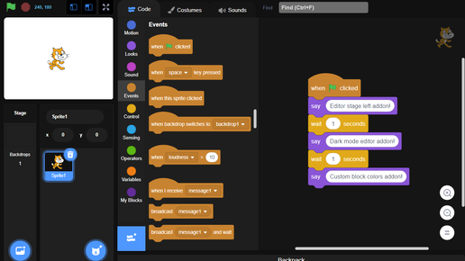 Привет! Сегодня я расскажу вам о 5 лучших модах/дополнениях для Скретч! Полетели! 5.Forkforus Специальный сайт, с помощью которого можно быстрее запускать проекты Скретч. На 5 месте из-за отсутствия настраивания. 4.Scratch Format Расширение, добавляющее в Скретч возможности работы с текстом. К сожалению, те, у кого нет расширения, будут видеть только теги. 3.DeRuC (Не работает) ДеРуК - расширение, которое добавляло много возможностей в Скретч. Оно было создано сообществом ДеРуК. К сожалению, оно перестало работать, а все аккаунты удалились...