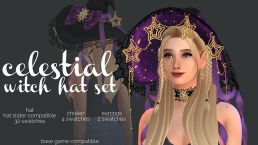Скачать мод бесплатно ☽𖤓 Simblreen - Celestial Witch Set ☾𖤓 для The Sims 4 - #Аксессуары@simsfans_ru