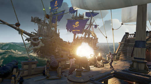 В Sea of Thieves иногда можно встретить корабль скелетов. Чаще всего это трехмачтовый галеон с порванными парусами.