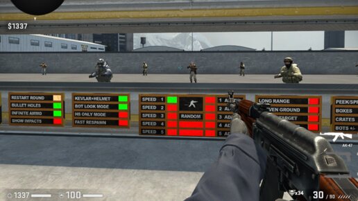 1) Карты с ботами. Самый простой способ размяться перед матчем в матчмейкинге или просто потренировать скилл – запустить карту с ботами. Самая популярная из них – это Aim Botz. Эта карта максимально универсальна и легко адаптируется под нужды игрока. Вы можете заспавнить определенное количество ботов, настроить их передвижение и расположение, а также добавить определенные препятствия. На Aim Botz можно тренировать все, что угодно: спреи, стрельбу с AWP, хэдшоты и так далее. Ссылка под описанием...