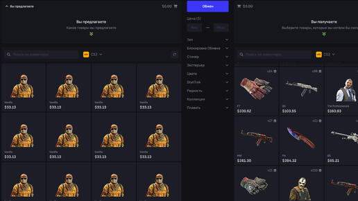 Сделал для вас подборку сайтов, где вы сможете легко поменять свои скины на другие скины из CS2 или других игр, например Dota 2, Rust. Площадки все уже давно работают, имеют реальные отзывы и хороший рейтинг в TrustPilot (это такой популярный сайт с отзывами). Лучшие сайты для обмена скинов CS2 (CS:GO) на скины CS2 (CS:GO): Лучшие сайты для обмена скинов CS2 на DOTA 2: Лучшие сайты для обмена скинов CS2 на реальные деньги: Лучшие сайты для обмена скинов CS2 на Rust: Лучшие сайты...