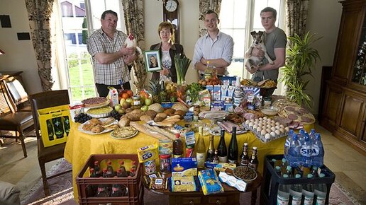 Фотопроект «Голодная планета» наглядно показывает, насколько велико расслоение между среднестатистическими семьями в разных частях света. Автор проекта, фотограф Питер Менцель, специально выбирал семьи, не выделяющиеся в своей стране - средний уровень дохода и среднее кол-во членов семьи. Естественно, в разных странах семьи традиционно рожают разное кол-во детей. В итоге, разница между среднячками действительно впечатляющая! Семья беженцев Абубакар, Чад Средняя зарплата в Чаде: 65 долларов Семья...