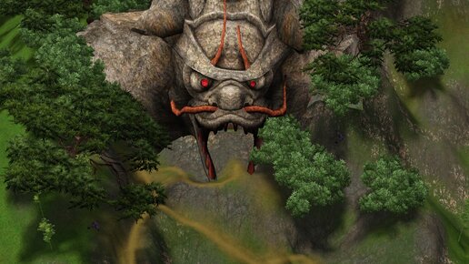 Внутри пасти находится стена, которую нужно изучить. Когда стена сворачивается вниз, видна лестница...