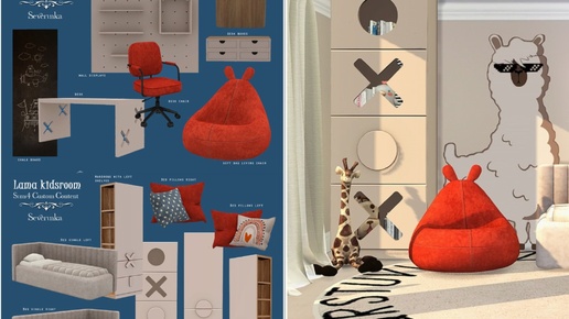 Установить мод Severinka_ - Lama kidsroom для The Sims 4 - #Детская@simsfans_ru Набор мебели и декора '.Severinka_ - Lama kidsroom' станет идеальным решением для создания стильной и функциональной детской комнаты в The Sims 4. В трёх сериях вы найдёте...