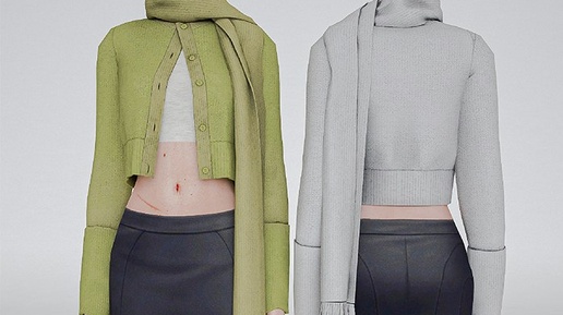 Скачать мод Кардиган и шарф - Scarf Wool Cashmere Cardigan Opened Version для Sims 4 - #Верхняячасть@simsfans_ru