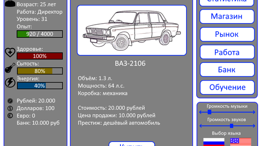 Симулятор бизнеса - это, как ни странно, симулятор бизнеса, где нужно начинать с самых низов. Поначалу у игрока нет работы, образования, социального статуса и ни копейки за душой. Пробивая себе дорогу вперед, игрок строит будущее своего персонажа, зарабатывая деньги и уважение, покупая недвижимость, автомобили, а также поднимаясь по карьерной лестнице...