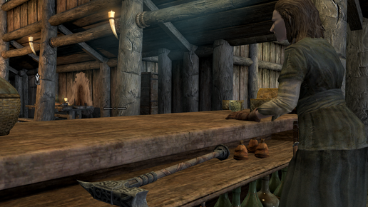 Не так давно возникла мысль - иногда кажется, что разбойников в Скайриме больше чем простых людей. Логично будет если эти нехорошие люди убивают, грабят и отбирают последний сладкий рулет. В таком опасном мире любой разумный торговец будет держать под стойкой хорошую железяку, которой можно надавать по башке каждому. И вот немного вариантов чем защищаются торговые люди Скайрима. Здесь довольно много вариантов, что первое пойдет в ход, но я бы выбрал утюг - можно запустить им как ядром, а дальше хвататься за топор...