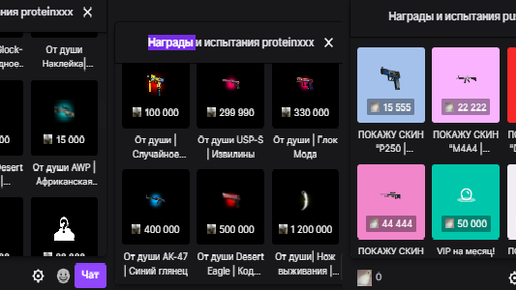 Скины из CS:GO за баллы TWITCH, или как стримеры накручивают живых людей привлекая их быть активным в чате и сидеть постоянно на стримах. Изначально можно было сказать, что это легальная накрутка для начинающих стримеров и выгода для всех: зрителям - скины, стримерам - онлайн. Но после того, как появилось много стримеров с магазином...