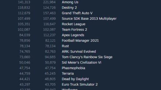 10 самых популярных игр в Steam в 2022 году по среднему количеству игроков в час
