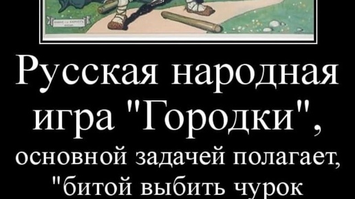 Городки — одна из старейших русских народных игр, известная ещё с XVIII века. Её упоминали в своих произведениях Лев Толстой и Фёдор Достоевский, а Пётр I и Александр Суворов считали её отличной тренировкой для меткости и силы. В XX веке городки стали официальным видом спорта в СССР, проводились чемпионаты и соревнования. 1. Фигуры — их 15, и каждая имеет своё название («пушка», «звезда», «колодец» и др.). 2. Бросок — игрок кидает биту с расстояния 6,5 или 13 метров (бонус за попадание в самую большую чурку)...