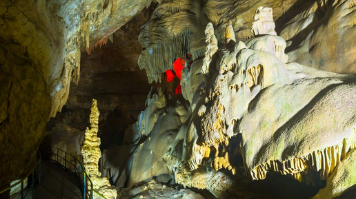 В июле 1961 года абхазский художник Гиви Смыр вместе с группой спелеологов спустился на глубину сто тридцать пять метров в провал, который местные жители называли Бездонной ямой. Фонари осветили огромное пространство под Иверской горой — зал площадью с футбольное поле, увешанный сталактитами. Темнота поглощала свет. В этой абсолютной черноте не росло ничего живого. Через четырнадцать лет, в 1975 году, в пещеру провели электричество и пустили первый подземный поезд с туристами. Лампы накаливания мощностью сто ватт осветили залы...