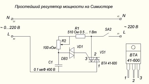 Начинаю новый цикл статей о простых и надежных схемах. Они в свою очередь будут нужны нам для опытов. Вот первый из них это будет регулятор , который даст возможность регулировать напряжение 220в практически до 0в. Схема всем известная и надежная. Дополнив этой схемой электроинструмент вы можете менять обороты например болгарки. Это наша схема...