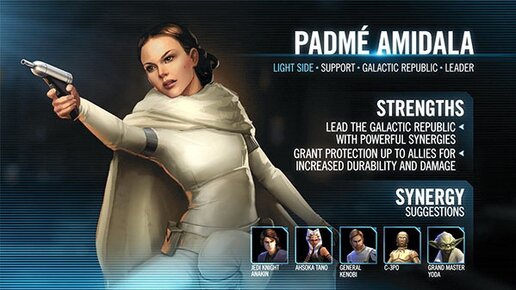 С какой же пачки начинать игру? Хорошая пачка под Падме: Джедай Энакин ,которого можно получить в битвах светлой стороны, а также в кантине. Асока тано ,можно получить в магазине флота, и в магазине кантины. Также в битвах светлой стороны. Генерал Кеноби- можно получить только в битвах танка (битва танка открывается когда ты есть у гильдии) ...