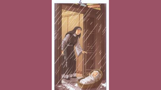 Здравствуйте! При первом взгляде на 2 мечей в колоде Таро 78 Дверей мы не увидим ничего общего с классическим арканом, где обычно изображается сидящая спиной к воде женщина с повязкой на глазах и двумя перекрещенными мечами, которые она держит на уровне груди. А тут какая-то корзинка с младенцем, подброшенным под порог монастыря, и ошарашенная, растерянная монашка, которая явно не понимает, что же ей делать с этим нежданным «сюрпризом». Отсюда вытекает главное значение аркана – неожиданная ситуация,...