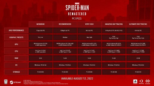 Заряжайте веб-шутеры: до релиза Spider-Man Remastered осталось меньше месяца. В связи с этим Sony опубликовали информацию об особенностях и улучшениях PC версии игры. Также геймеров порадовали и новым трейлером обновленных приключений дружелюбного соседа. Разработчики рассказали, что целью ремастера было показать игрокам “ошеломляющую” графику на компьютерах. Для удобства мы предоставим в виде списка некоторые возможности PC версии игры: Все эти навороты конечно...