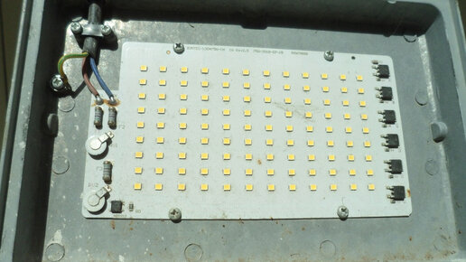 Снова категорически всех приветствую! Попался тут на объекте "раздетый" типичный современный обезжиренный "плоский" прожектор. Щёлкнул, благо всё отлично видно. Многие рукастые люди покупают такие "плоские" прожекторы. Вроде, при первом рассмотрении, такая покупка выглядит привлекательно: много света за немного денег, относительно приличный люминевый корпус-радиатор с оребрением. Проблема только в том, что в погоне за удешевлением, производители уже давно перестали ставить в прожекторы полноценные импульсные драйверы с низкими пульсациями...