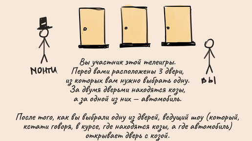 Разбор парадокса Монти Холла. Решение задачи поначалу приводит в ступор.
