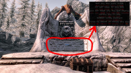 Особая магия Скайрима - это Крики - своего рода заклинания составленные из слов драконьего языка. Эти слова мы находим по всему Скайриму на таких вот Стенах: Наверняка все узнали святилище из Храма на Ветреном Пике. (К слову, меч в этой видеозаписи я сделал сам за пару часов.) Подавляющее большинство игроков подбегали к этой стене, "изучали" слово и бежали дальше. Я сам годами был уверен, что все эти стены одинаковые и смотреть там не на что. Но на самом деле... ) На самом деле, на каждой стене (и не только на стенах) осмысленная надпись на драконьем языке...
