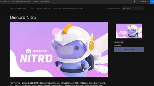 Привет, у меня для вас срочные новости. Как мы знаем, Epic Games любят раздавать игры бесплатно. Однако вчера я узнал у друга у том, что Эпики раздают дискорд нитро на 3 месяца, и не только, так же вы получите 2 буста в подарок, с помощью которых вы можете дать 1 уровень буста до конца лета. Итак, приступим к его получению: 1. Заходим на сайт : https://www.epicgames.com/store/ru/p/discord--discord-nitro?lang=r Нажимаем оформить заказ; 2. Регистрируемся в Epic Games Вы можете сделать это как угодно; Хоть со стима, хоть с ВК, хоть с гугла...