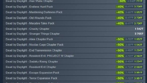 Распродажа ДБД в Steam до 6 октября 💸 • Получите скидку 60% на базовую игру. • Получите скидку 50% на Gold Edition. • DLC получили скидку от 30% до 50%, за исключением: "Stranger Things", "Chucky", "Tokyo Ghoul", "FNaF", "The Walking Dead"...