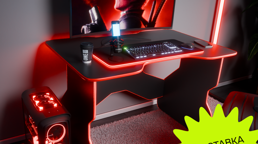 Стол компьютерный игровой геймерский для ПК с RGB подсветкой